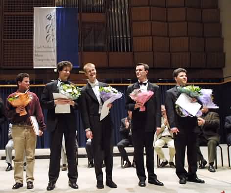 The Nielsen Competition uses a simple but efficient voting system. Without any kind of discussion, members of the jury cast their votes in secret.The secretary general of the competition and an impartial supervisor count the votes after each ballot.After approx. an hour the jury re-enter-ed the hall, the result was announced and prizes awarded in front of an enthusiastic public.