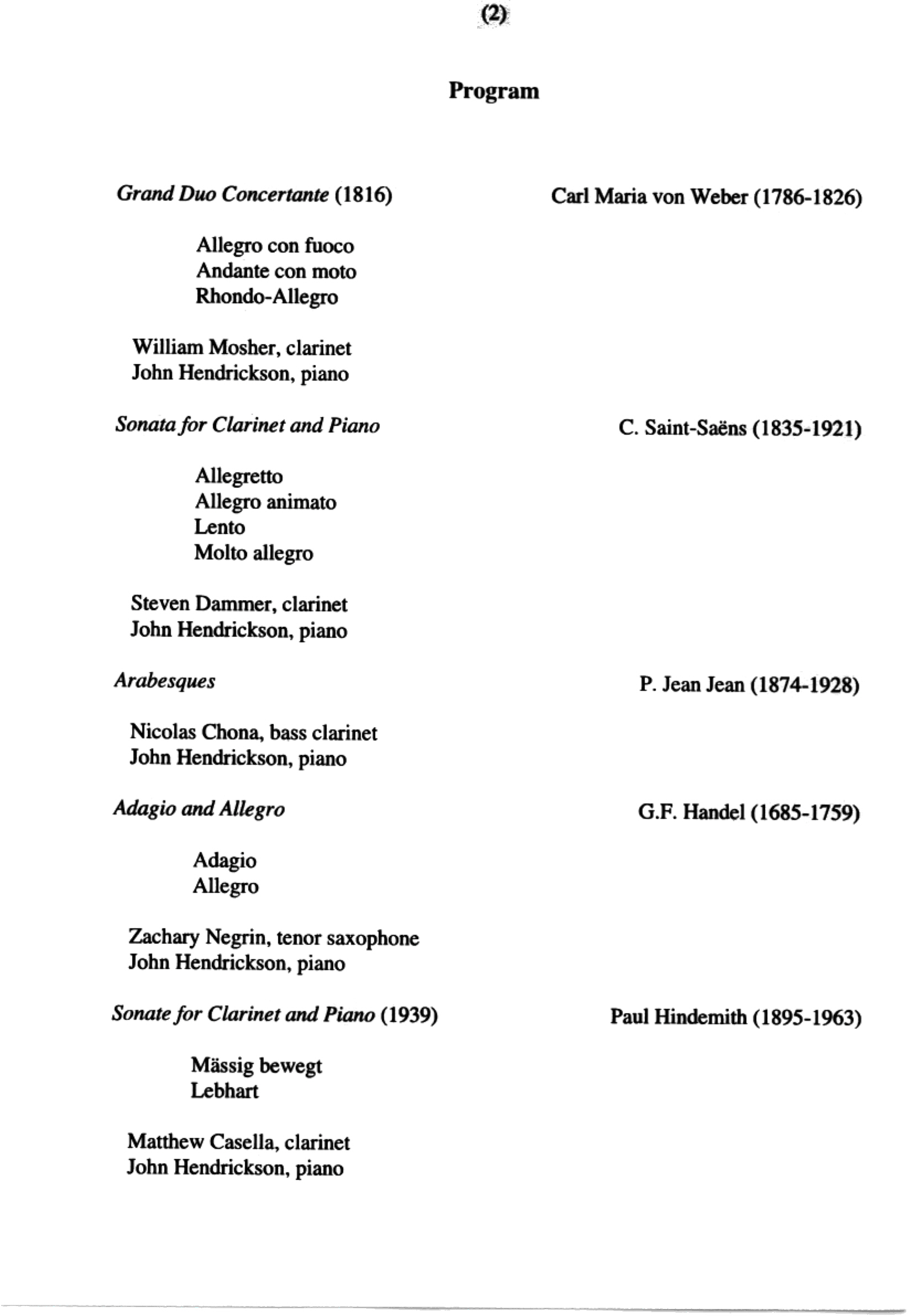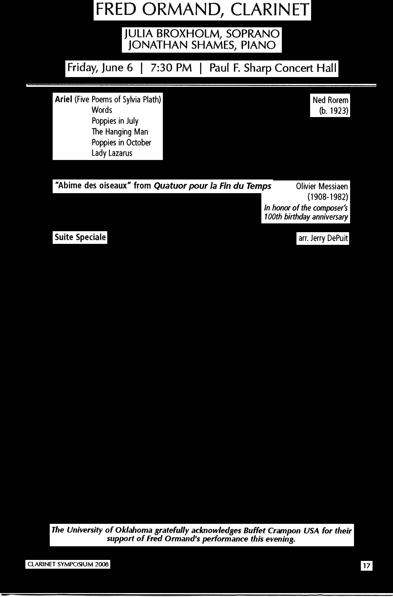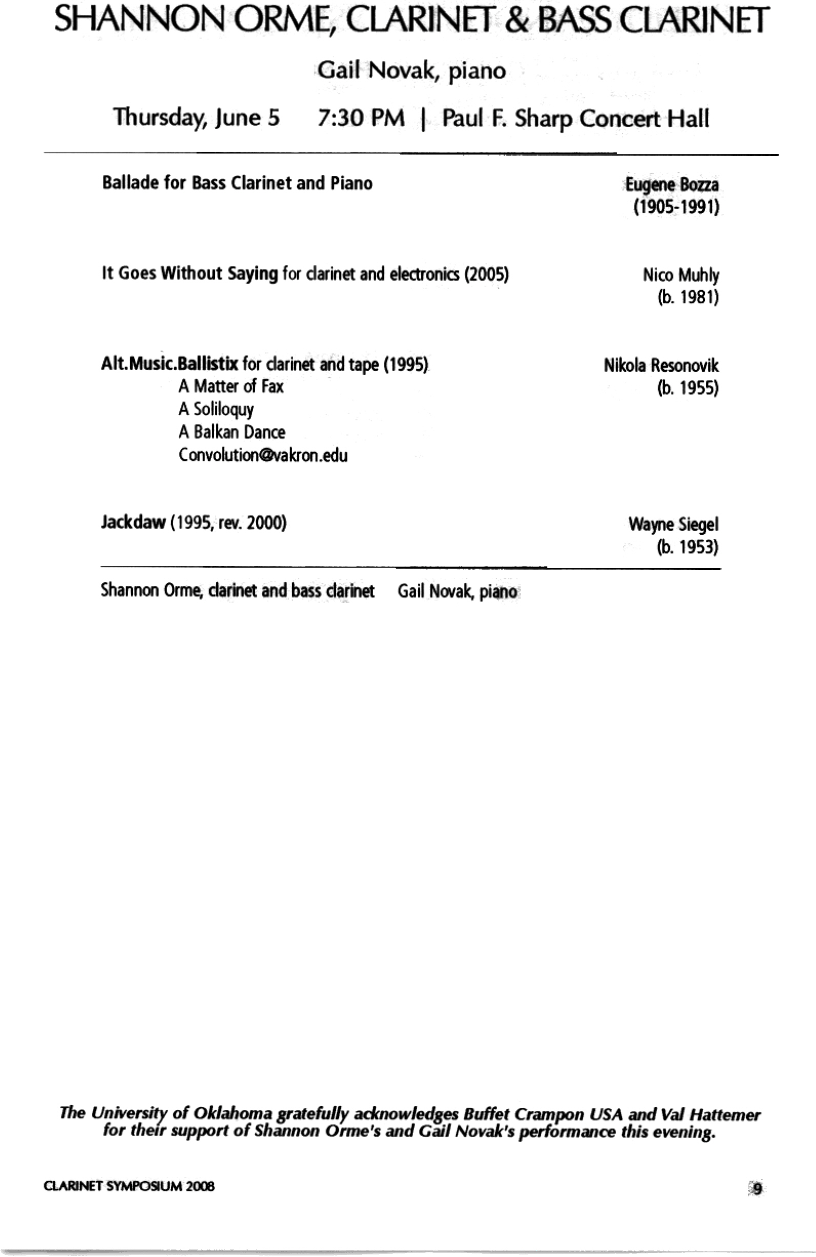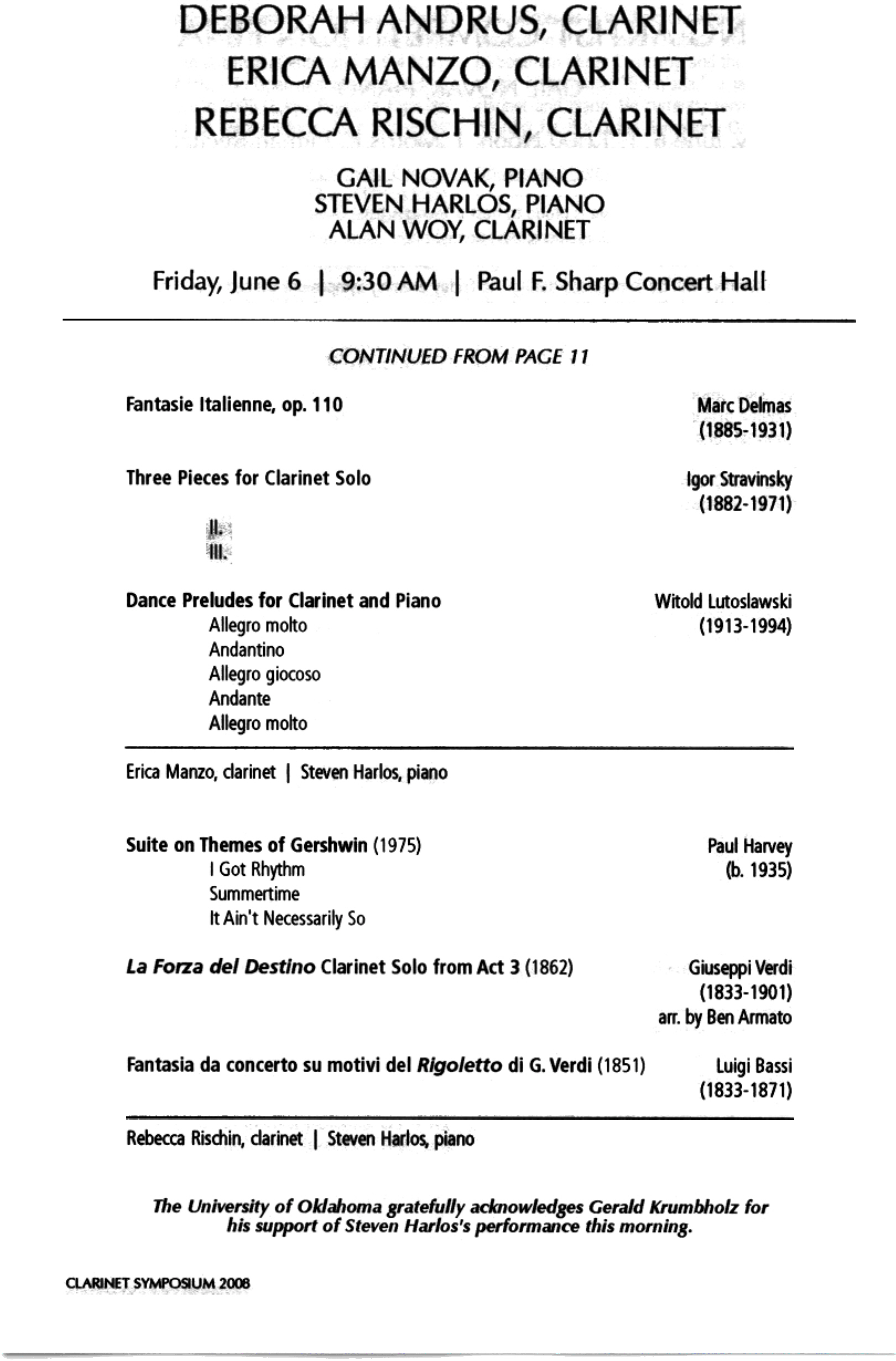 Vanoosthuyse Clarinet Recital