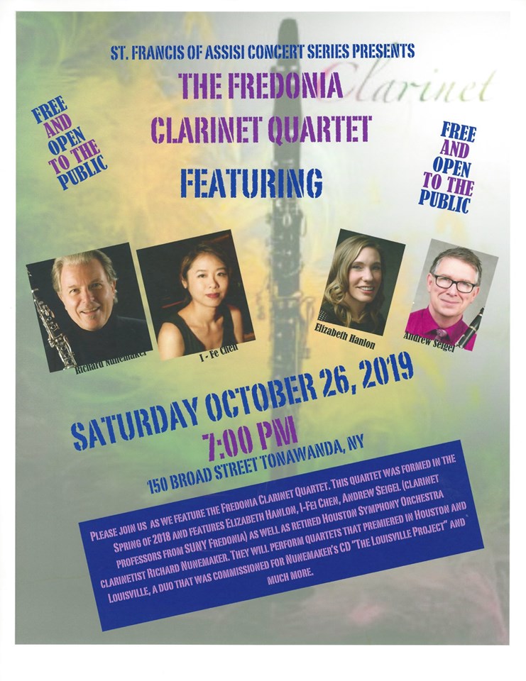 Fredonia Clarinet Quartet Concert with State University of New York at Fredonia Faculty and Alumni and Senior VIP Richard Nunemaker (Bass Clarinet Alumni and member of the Houston Symphony for 40 years) - 26 October 2019 - Tonawanda, New York