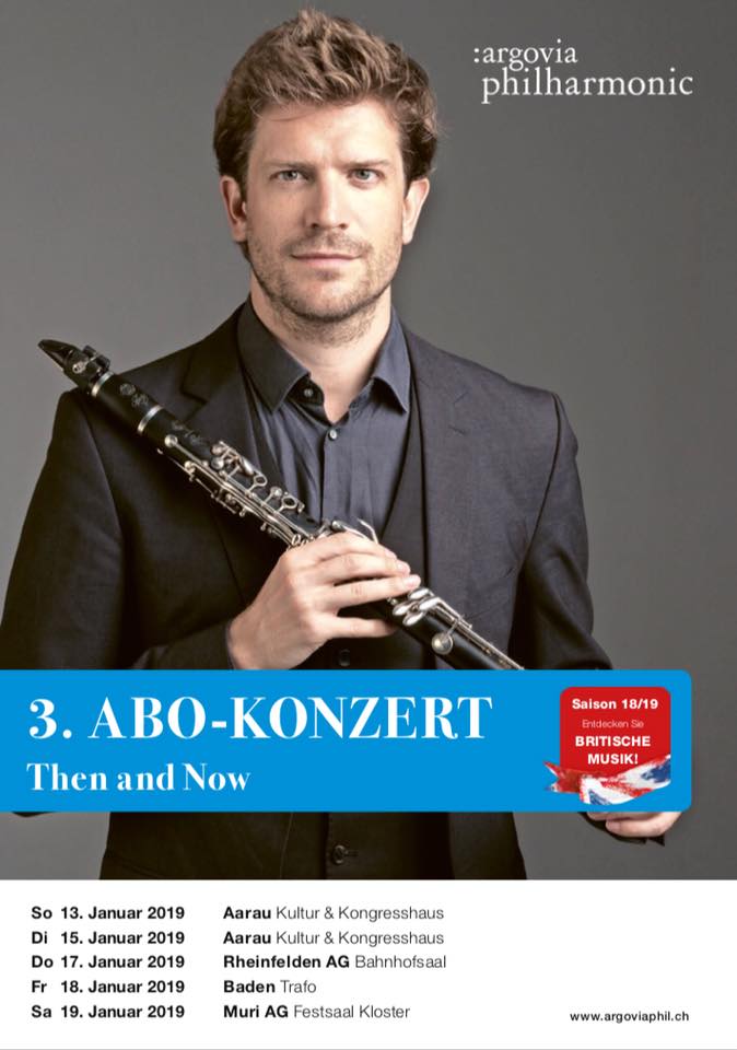 Francesco Nigreni Solo Clarinet Tour with Finzi Clarinet Concerto with Rune Bergmann & Argovia Philharmonic 13 - 19 January 2019 - Switzerland