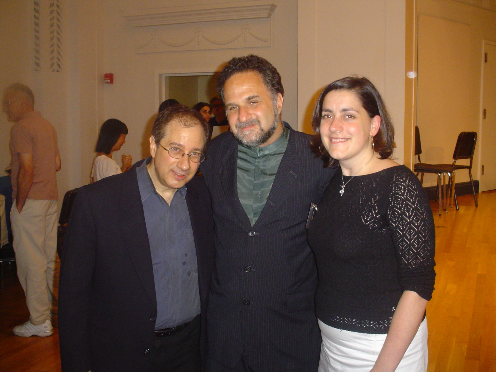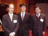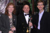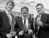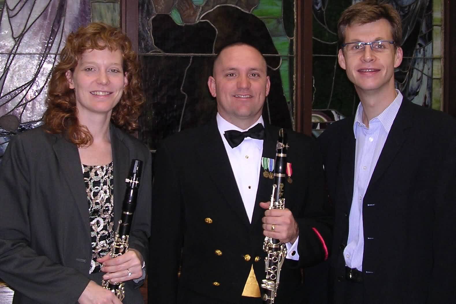 Narrator Jananovic, Stephen Makofski, composer, and John Stephens, Conductor of American Sym Clarinet Choir in 2 Premieres