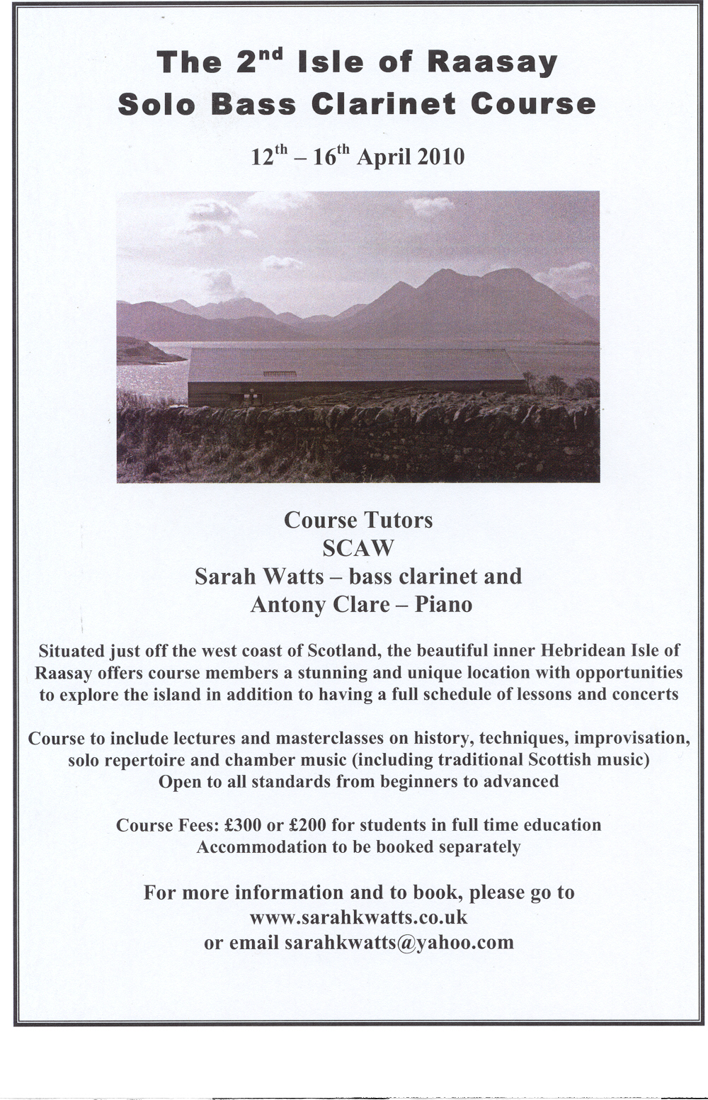 and chamber music for clarinet, voice, and piano. Students will also