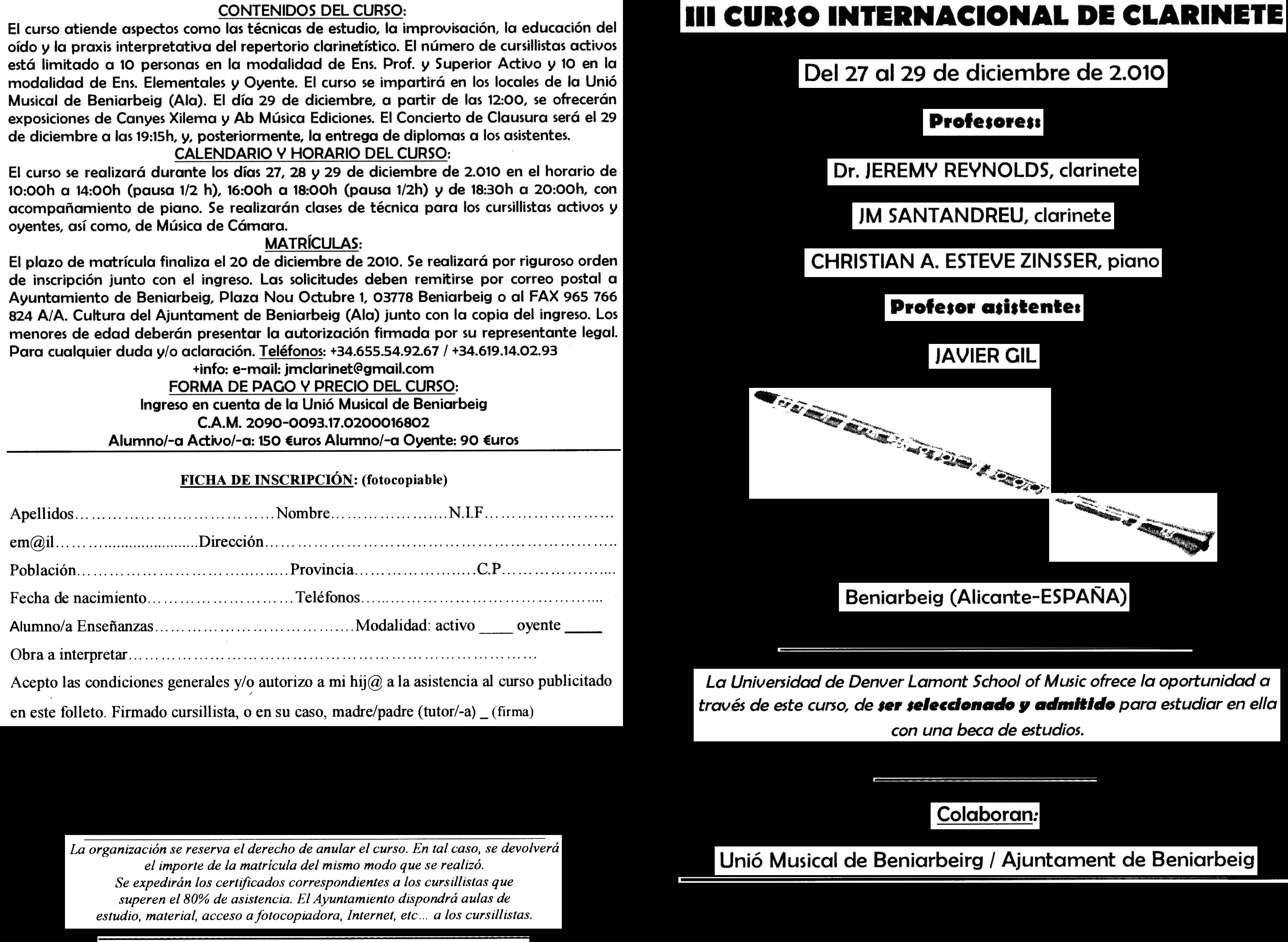 Spanish 3rd Clarinete Course - 27 - 29 December 2010
