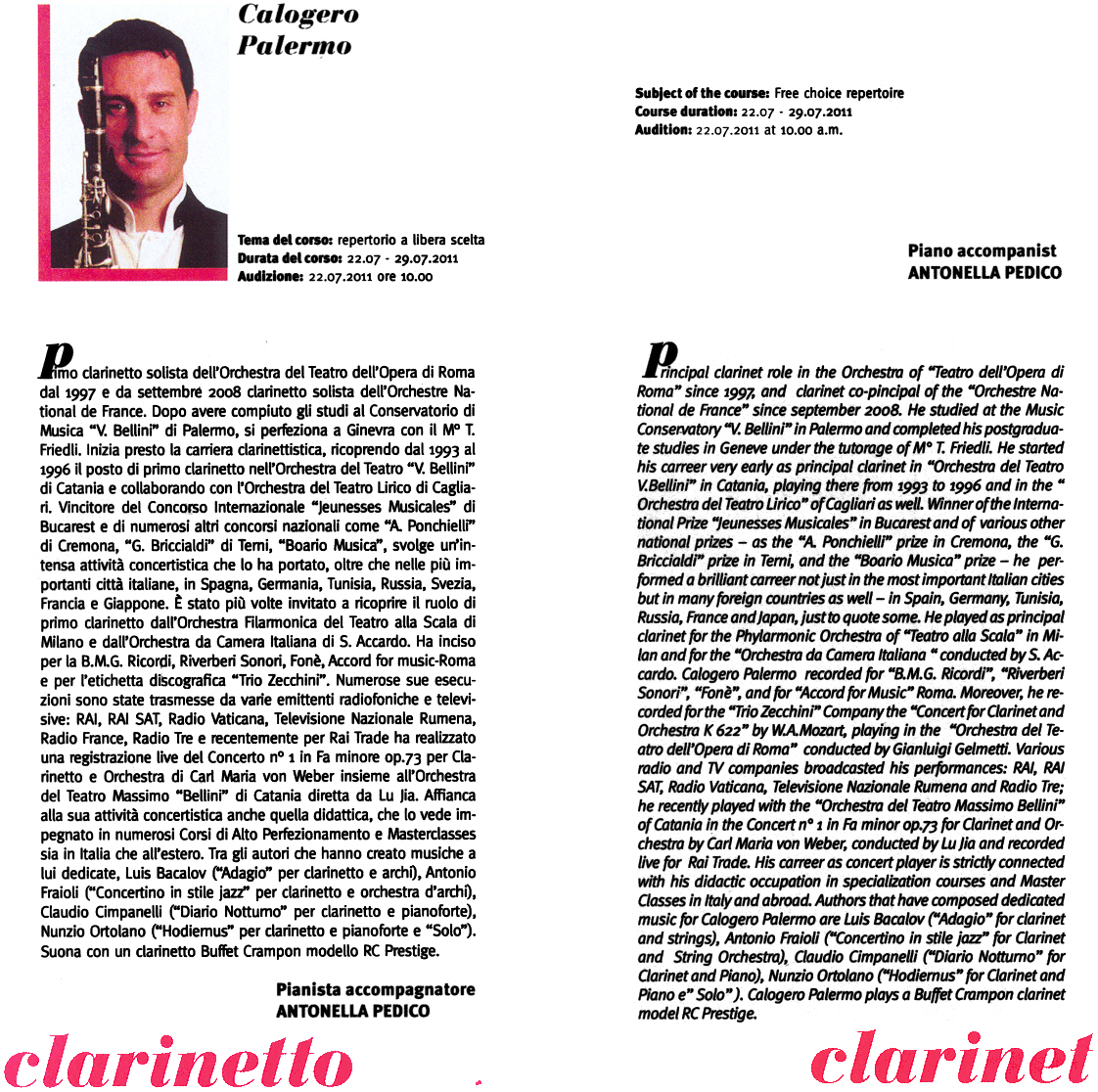 Clarinet Master Classes 22 - 29 July