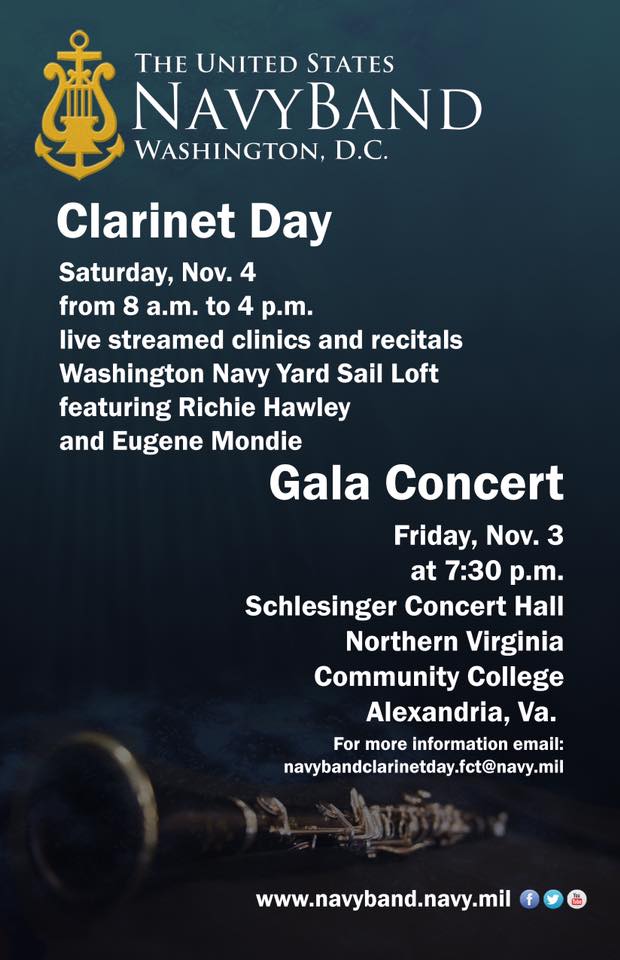 US Navy Band Clarinet Day - VIP Laura Grantier, Director - VIP Richie Hawley, Guest Soloist - 3 - 4 November 2017